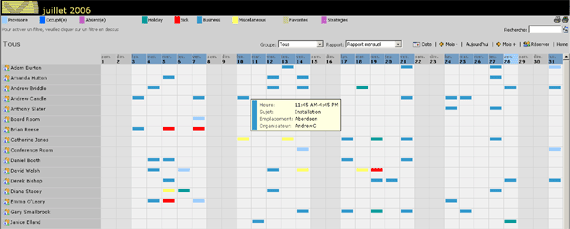 configurer en toute simplicit� des r�unions avec les personnes de toute votre organisation | Agenda/X revalorise le planning Microsoft Exchange et Outlook en publiant un sommaire consolid� et graphique d'informations des calendriers par l'interm�diaire de votre Intranet. Id�al pour les organisations petites, grandes, mobiles ou fusionn�es, Agenda/X donne au management, aux secr�taires de groupe et aux coll�gues une vue instantan�e d'o� sont les gens, de ce qu'ils font, et quand ils seront prochainement disponibles. Jamais n'�tait un calendrier de groupe si fa�ile � utiliser!