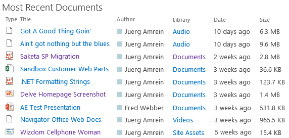 Abbas 3/23/2016 12:51 | Hello Juerg, I'm trying to use this on our public site (publishing site) and it works when logged in, but when not signed in, we are getting this where the web part should appear: "No documents found." All of the libraries that are listing documents in the web part have read access to anonymous users. What could be causing this? I also have this problem in your "News rollup web part" too! Is there any way to solve this problem in your nice web parts? regards, Abbas |
