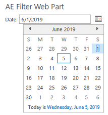 Juerg 10/4/2019 16:11 | Jan, you can filter the list for all dates greater than the filter date by adding the below to the web part’s “Options” setting: