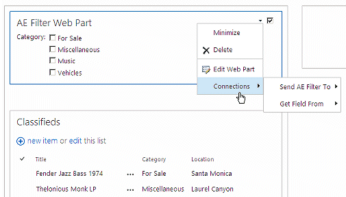 (ie. the dropdown displays the "City" columns for all entries where the "Country" column matches the value selected in the first filter). You now also need to connect the two web parts via a web part connection. |