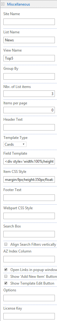 - Configure the following Web Part properties in the Web Part Editor "Miscellaneous" pane section as needed:
