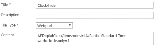 - enter "AEDigitalClock" (the web part class name) into the tile's "Content" setting