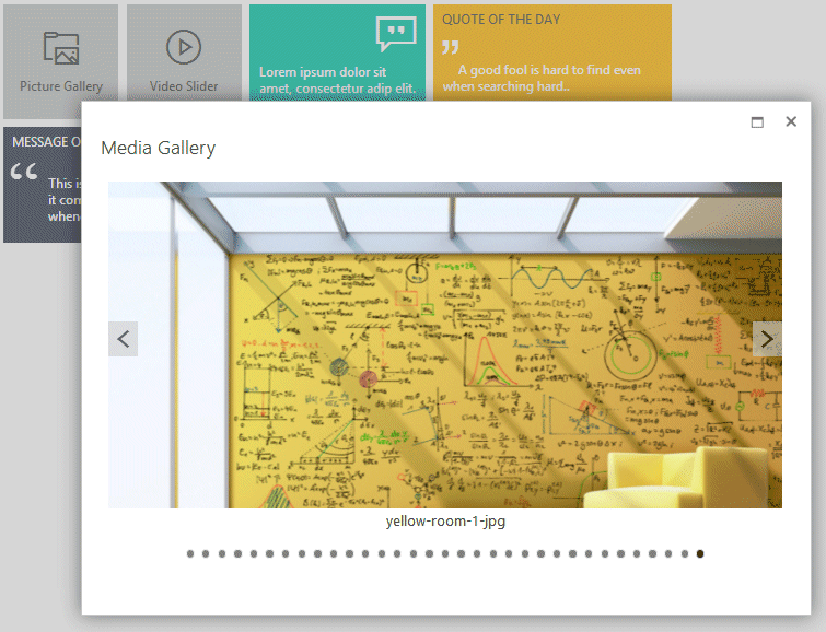 To create a tile that opens a Picture Library or an Asset Library as a Media Gallery in a Sharepoint dialog popup.