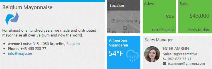 Tile #1 (Main tile)The tile points at a Customers list view and displays a specific list item based on the passed in "customer" URL parameter. | ||
