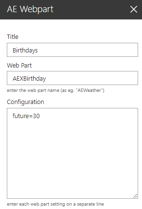 The "Birthday & Anniversary Reminder" Web Part selects the forthcoming birthdays, anniversaries or "newly hired employees" of users from the Sharepoint User Profile Store and displays the selected profile property fields in a freely configurable template.