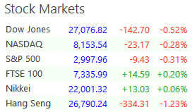 ronguy3219 6/1/2018 15:51 | What would cause the DOW value to not update reliably? I have the DOW, Nasdaq and a stock set up and the Nasdaq and stock update their values. However, the DOW gets stuck on a value and may update once every 2 or 3 days. |