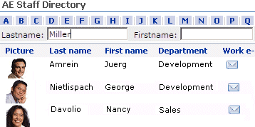 New Staff Directory Web Part Tuesday, December 8, 2009 The�Staff Directory Web Part�reads the user entries from�the MOSS User Profile Store and displays the selected user fields in a list. The Web Part requires Windows Sharepoint Server 2007 (MOSS). It allows to specify the user properties to be displayed, sorting, grouping, filtering and an AZ index. More infos: http://www.amrein.com/apps/page.asp?Q=5785 Author: Site Admin ![]() |